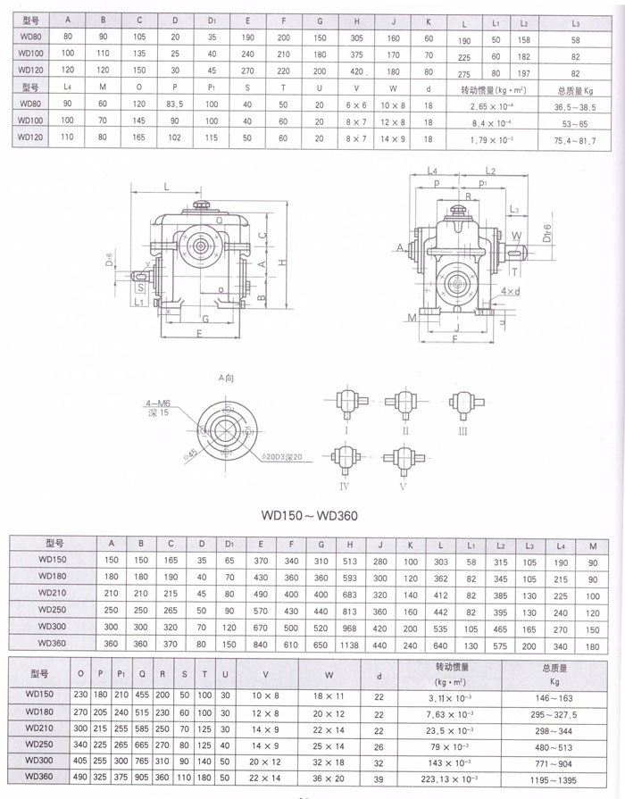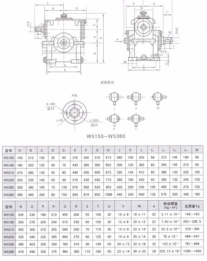 WS蝸桿減速機(jī)80~120安裝尺及裝配型式